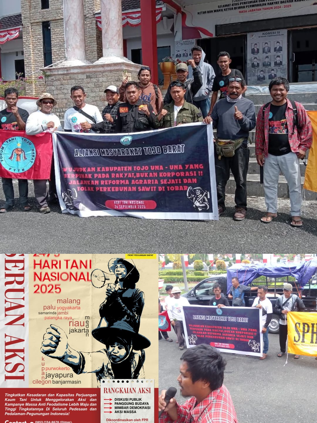 BuseronlineNews.com // SULAWESI TENGAH (254/09) – Aliansi Masyarakat Tojo Barat (AMTB) Kabupaten Tojo Una Una bersama Serikat Pekerja Hukum Progresif (SPHP), Sarekat Hijau Indonesia (SHI), Front Mahasiswa Nasional (FMN) dan Front Perjuangan Rakyat (FPR) melakukan aksi solidaritas Hari Tani Nasional di DPRD Kabupaten Tojo Una Una.
