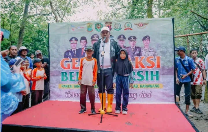 Karawang, Bupati Karawang H. Aep Syaepuloh bersama Forum Koordinasi Pimpinan Daerah (Forkopimda) Kabupaten Karawang menggelar aksi nyata Gerakan Indonesia ASRI (aman, sehat, resik, indah) di Kawasan Ekowisata Mangrove Dusun Tangkolak, Desa Sukakerta, Kecamatan Cilamaya Wetan pada Sabtu (7/2/2026).