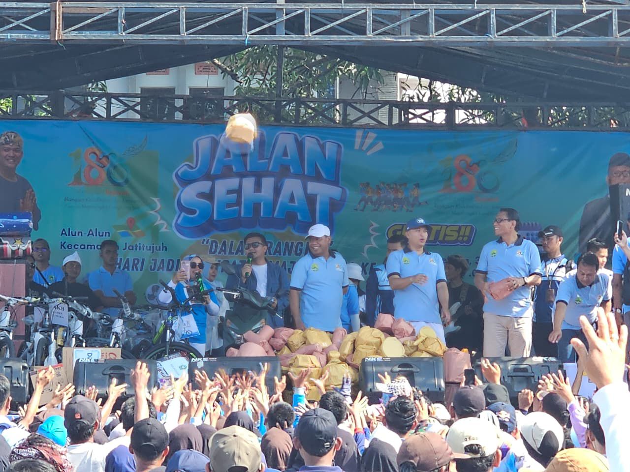Kemeriahan hari jadi Majalengka untuk Kegiatan Jalan Santai dengan hadiah utama sepeda motor serta puluhan hadiah menarik lainya secara resmi dilepas oleh Bupati Majalengka H. Eman Suherman, didampingi Wakil Bupati Dena Muhammad Ramdan, Sekretaris Daerah Aeron Randi, Ketua TP – PKK Kabupaten Majalengka serta jajaran perangkat daerah dan unsur terkait lainnya.