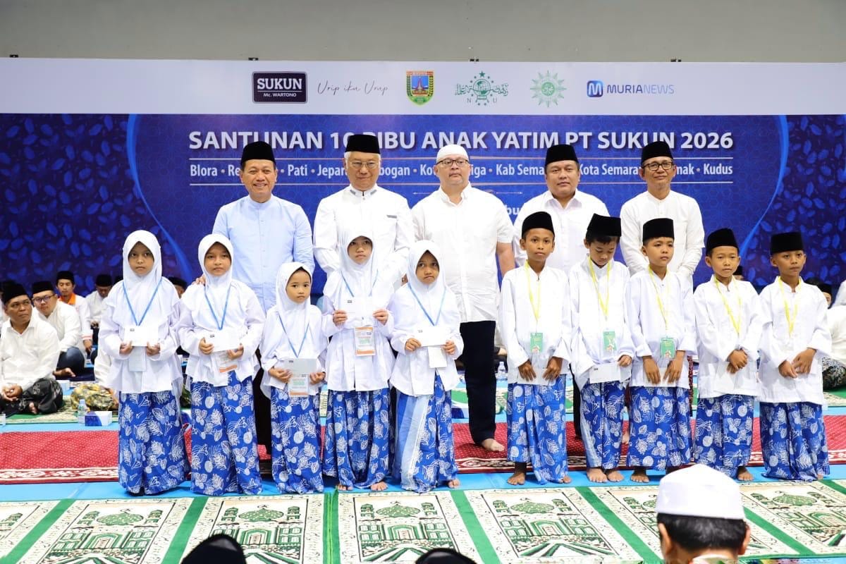KUDUS – Kegiatan Santunan 10 Ribu Anak Yatim PT Sukun Wartono Indonesia Tahun 2026 digelar di Sukun Sport Center Gebog, Kamis (5/3/2026). Program sosial tersebut menjangkau anak-anak yatim di sejumlah daerah di Jawa Tengah, meliputi Kabupaten Kudus, Blora, Rembang, Pati, Jepara, Grobogan, Kabupaten Semarang, Demak, serta Kota Salatiga dan Kota Semarang.