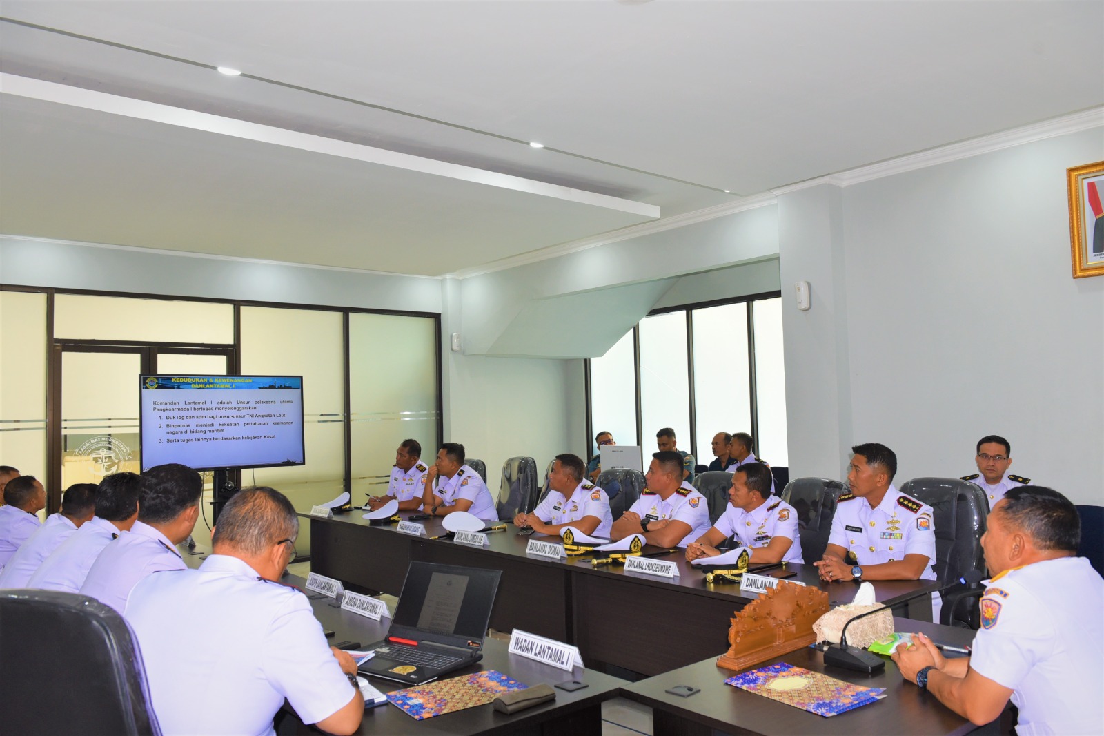 BuseronlineNews.com // TNI AL, Belawan,- Komandan Pangkalan Utama TNI Angkatan Laut I (Danlantamal I) Brigjen TNI (Mar) Jasiman Purba, S.E., CHRMP., memimpin Rapat Staf dan Danlanal jajaran Lantamal I, bertempat di Ruang Rapat Mako Lantamal I, Jalan Serma Hanafiah No. 01 Belawan, Sumatera Utara Senin (1/4/2024).