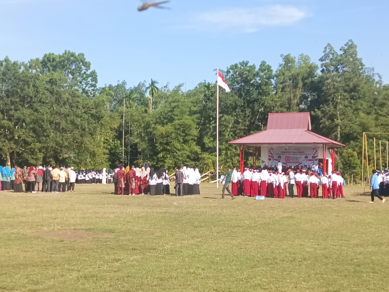 Bertugas sebagai Komandan Upacara Ridho Abdul Razak, mahasiswa KKN UIN SusQa Pekanbaru Riau. Sementara itu, pengibaran Bendera Merah Putih dilakukan oleh Alif Arifqu, Muhammad Nurazizi dan Abdul Azhari yang merupakan putra terbaik desa.