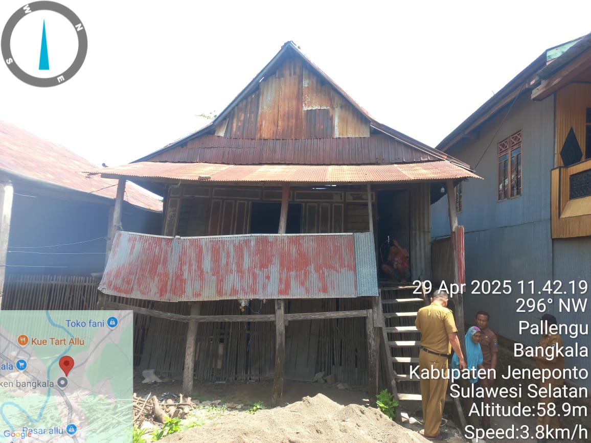 BuseronlineNews.com // Jeneponto — Pemerintah Kabupaten Jeneponto melalui Dinas Perumahan, Kawasan Permukiman dan Pertanahan (Disperkimtan) meninjau langsung kondisi rumah tidak layak huni milik Ibu Basse di Dusun Tompolando, Kelurahan Pallengu, Kecamatan Bangkala, pada Selasa (29/04/2025).