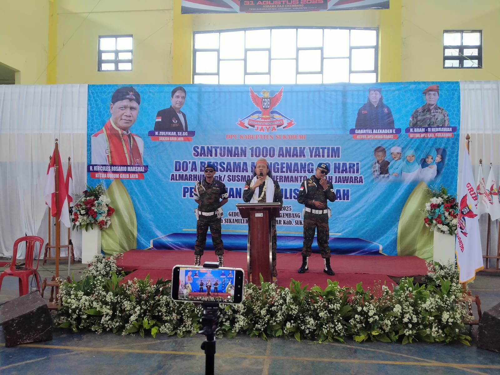 Sukabumi-buseronlinenews.com, acara Doa bersama 1000 anak Yatim mengenang (alm) Susman Kushermanto ketua DPC kabupaten Sukabumi, yang digelar di gedung asrama haji Cikembang, dalam acaranya yang di hadiri Wabup Sukabumi H.Andreas dan Kapolres Sukabumi AKBP Dr. Samian yang di wakili Kapolsek Cikembar bersama jajaran, hadir pula sejumlah tamu undangan, tokoh agama dan tokoh masyarakat Cikembar, pada Minggu 31 Agustus 2025.