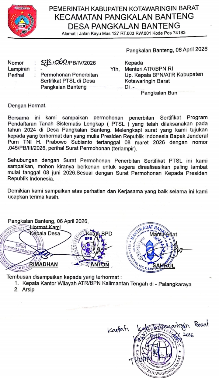 Rimadhan, Kades Pangkalan Banteng, dalam pesan WhatsApp-nya kepada awak media hari Selasa (07/04), menyampaikan bahwa ia sangat menyesalkan pengambilan keputusan sepihak dari BPN Kobar atas Dumas PT PN IV Regional V untuk tidak menerbitkan Sertifikat Program Strategis Nasional PTSL.