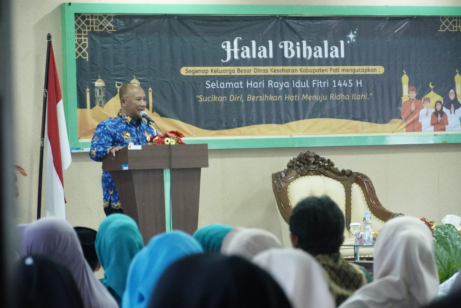PATI – Penjabat (Pj) Bupati Pati Henggar Budi Anggoro bersama Sekretaris Daerah (Sekda) Kabupaten Pati Jumani hadiri kegiatan halal bihalal bersama keluarga besar Dinas Kesehatan Kabupaten Pati.