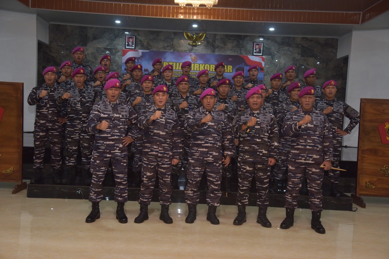Diakhir sambutannya Komandan Korps Marinir mengucapkan selamat datang dan bertugas kepada Brigjen TNI (Mar) Supriyono, S.E., M.M., saya yakin dengan bekal pengalaman, kearifan dan penugasan sebelumnya, Brigjen TNI (Mar) Supriyono, S.E., M.M., akan mampu melaksanakan tugas dengan baik kedepannya.