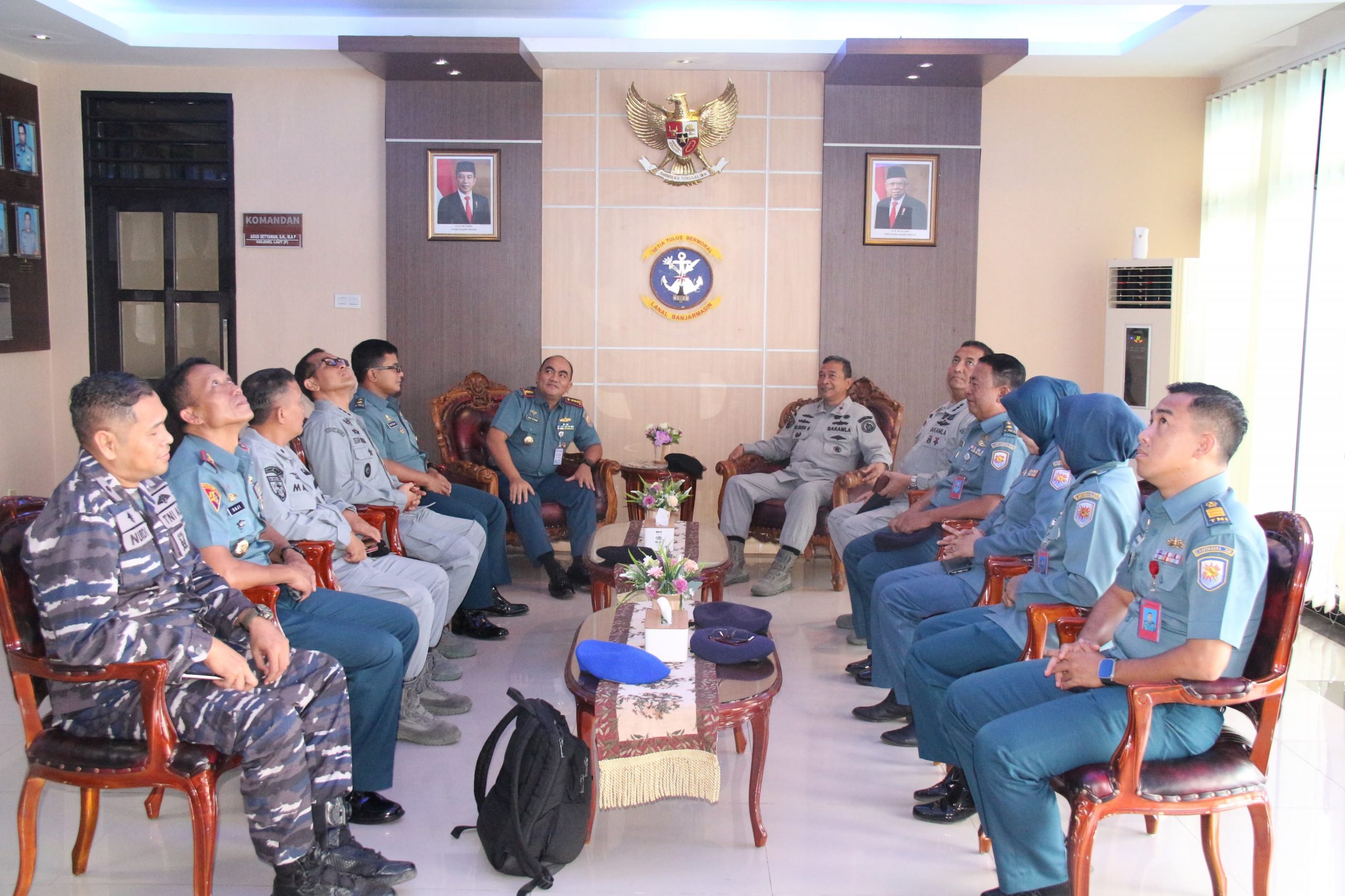 BuseronlineNews.com // TNI AL, Banjarmasin,- Komandan Pangkalan TNI AL Banjarmasin Kolonel Laut (P) Agus Setyawan, S.H., M.A.P., menyambut kedatangan Kepala Zona Bakamla Tengah Laksma Bakamla Oc. Budi Santoso, S.H., M.Si., M.Tr.Opsla., bertempat di Loby Mako Lanal Banjarmasimn, Senin (25/3/2024).