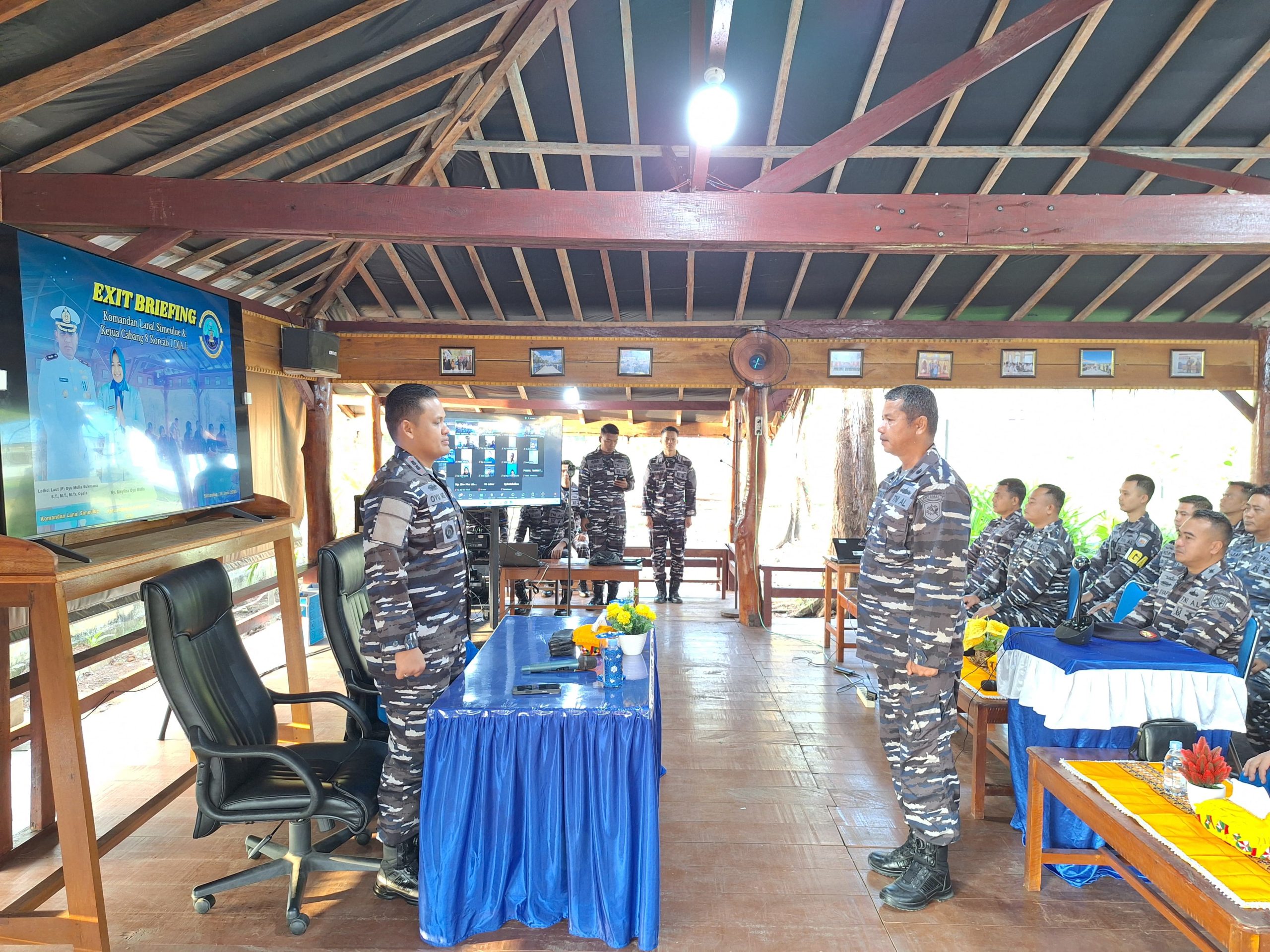 BuseronlineNews.com // TNI AL, Simeulue,- Diakhir masa jabatannya di Lanal Simeulue, Danlanal Simeulue Letkol Laut (P) Oyu Mulia Sukmana, S.T,. M.T,. M.Tr. Opsla., didampingi Ketua Cabang 8 Korcab I DJA I Ny. Meylina Oyu Mulia melaksanakan Exit Briefing kepada prajurit dan segenap Pegawai Negeri Sipil Lanal Simeulue, bertempat di Gazebo Eco Park Mako Lanal Simeulue, Minggu (29/6/2025).