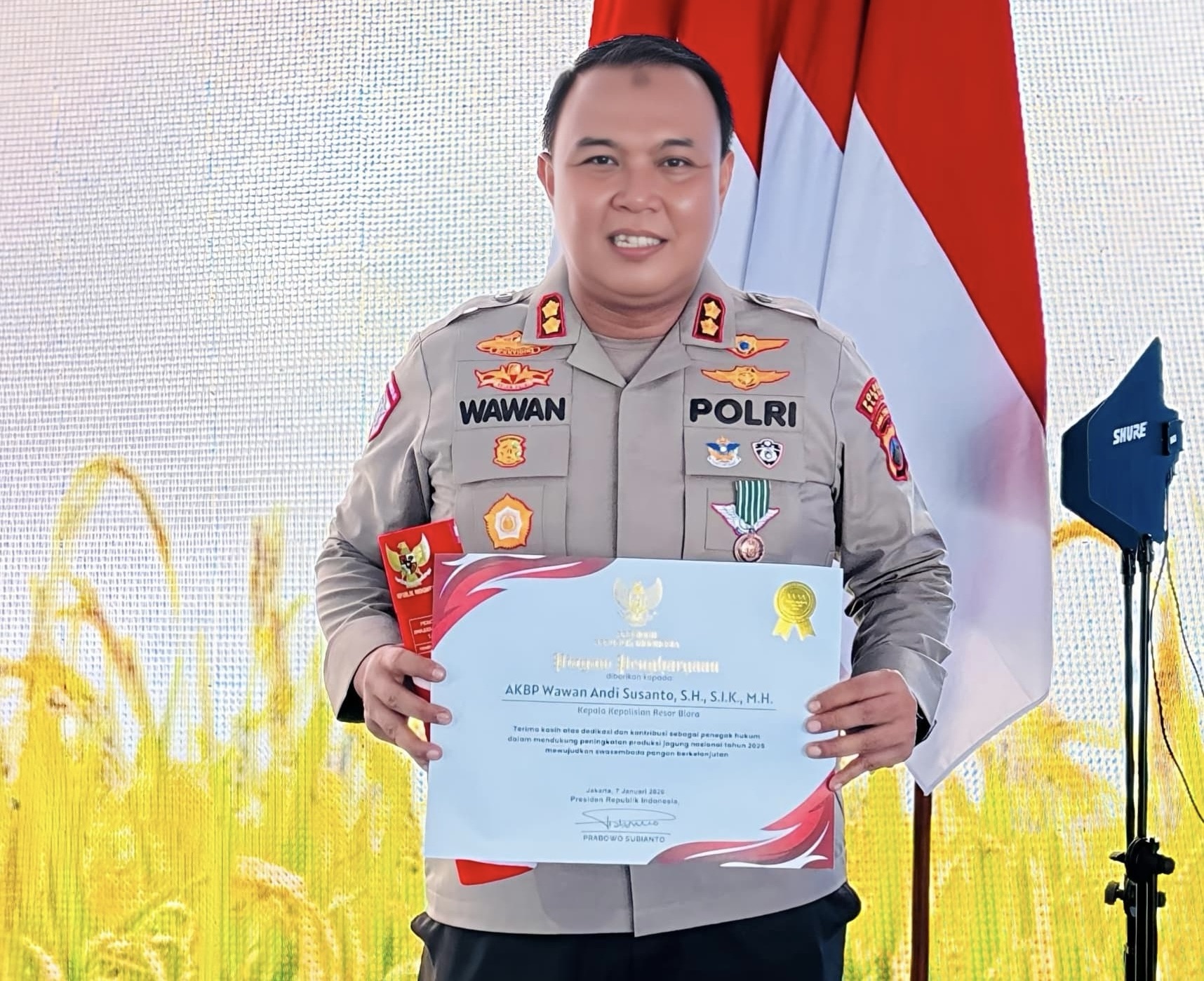 Hal ini dibuktikan dengan penganugerahan Tanda Kehormatan Satyalancana Wira Karya kepada Kapolres Blora AKBP Wawan Andi Susanto, S.H., S.I.K., M.H., atas dedikasi dan kontribusinya dalam mendukung peningkatan produksi jagung nasional tahun 2025 di wilayah Kabupaten Blora, Jawa Tengah.