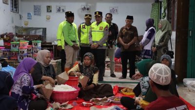 Menjelang malam, rombongan meninjau Balai Desa Karangrowo yang difungsikan sebagai dapur umum bagi warga terdampak banjir. Polres Kudus turut menyalurkan bantuan logistik untuk mendukung operasional dapur umum tersebut.