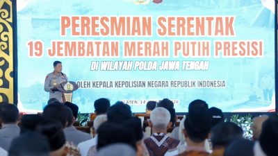 BuseronlineNews.com // Polda Jateng – Klaten | Kapolri Jenderal Polisi Listyo Sigit Prabowo meresmikan secara serentak 19 Jembatan Merah Putih Presisi yang telah selesai dibangun di berbagai wilayah Jawa Tengah, Rabu (14/1/2026). Peresmian dipusatkan di Jembatan Merah Putih Presisi yang menghubungkan Desa Cucukan dan Desa Kotesan, Kecamatan Prambanan, Kabupaten Klaten.