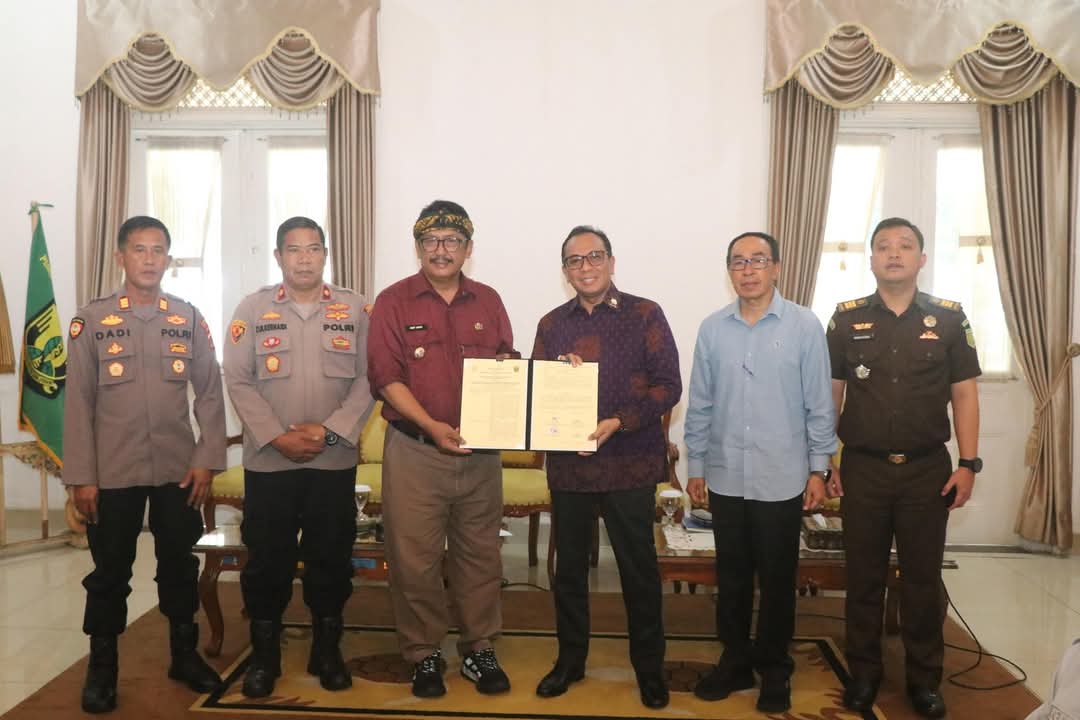 Sukabumi- Bupati Sukabumi H. Asep Japar menandatangani kesepakatan bersama antara Pemerintah Daerah Kabupaten Sukabumi dengan Pengurus Daerah Ikatan Notaris Indonesia (PENGDA INI) Kabupaten Sukabumi di Pendopo, Selasa, 27 Mei 2025. Penandatanganan kesepakatan bersama tersebut berkaitan program pembangunan daerah dan peningkatan hukum di Kabupaten Sukabumi. Di mana salah satu berkaitan percepatan pembentukan Koperasi Desa/Kelurahan Merah Putih ini.