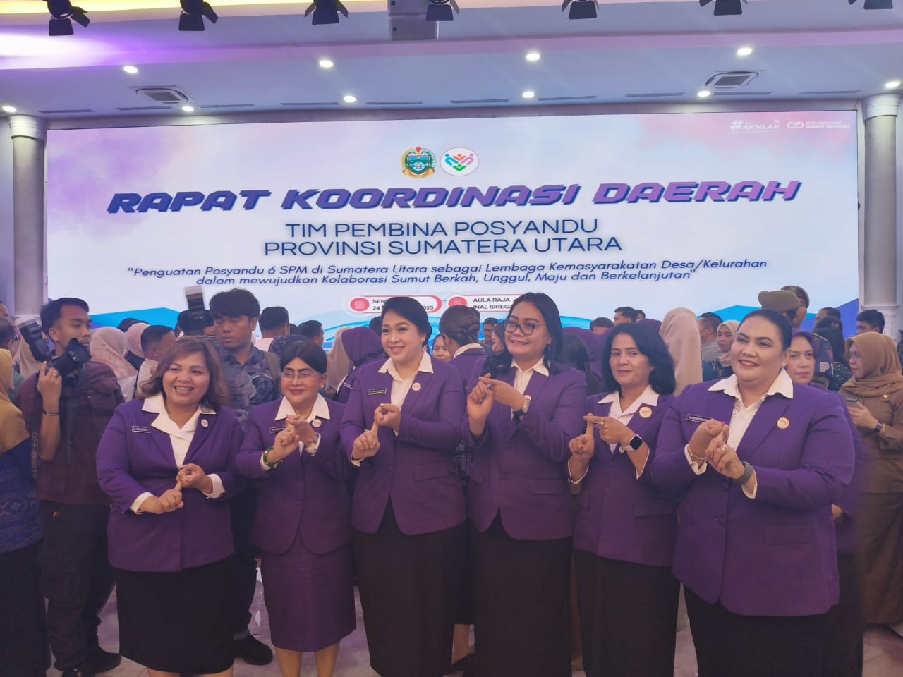 TAPUT – Ketua Tim Pembina Posyandu Kabupaten Tapanuli Utara Ny. Neny Angelina JTP Hutabarat didampingi Plt. Kepala Dinas Pemberdayaan Masyarakat dan Desa (PMD) Satya Dharma Nababan menghadiri Rapat Koordinasi Daerah (Rakorda) Posyandu tingkat Provinsi Sumatera Utara yang dilaksanakan di Aula Raja Inal Siregar, Kantor Gubernur Sumatera Utara, Medan (Senin, 24 November 2025).