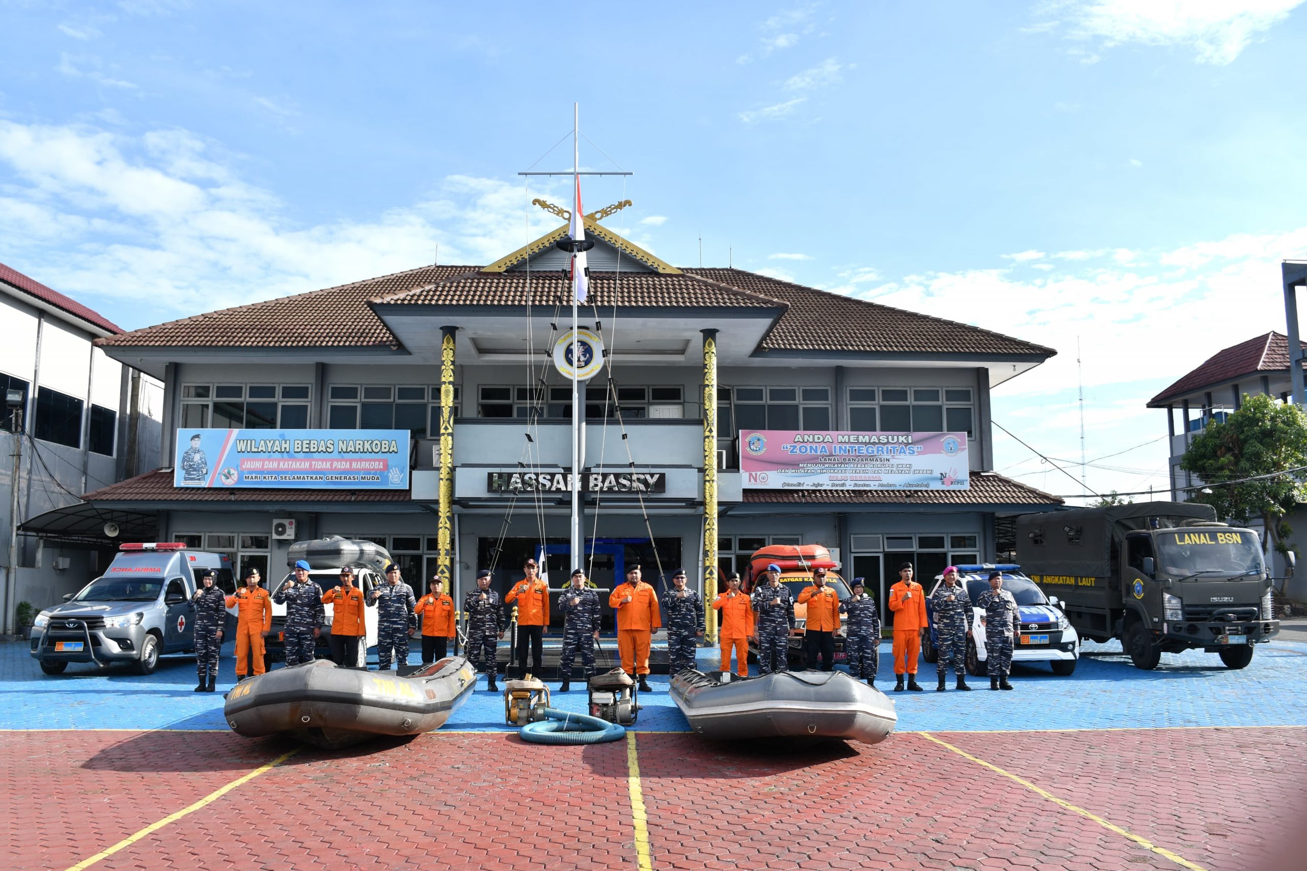 Pada kegiatan tersebut juga dilaksanakan pemeriksaan pasukan, pengecekan sarana dan prasarana yang terdiri dari alat apung seperti perahu karet serta berbagai jenis kendaraan dan peralatan pendukung lainnya.