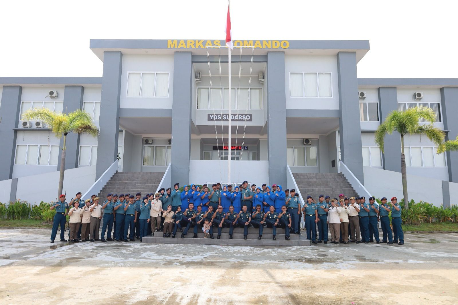 Usai upacara peresmian kenaikan pangkat, dilanjutkan tradisi TNI AL berupa penyiraman air kembang kepada prajurit Lanal Dumai yang naik pangkat didampingi masing-masing suami dan istri.