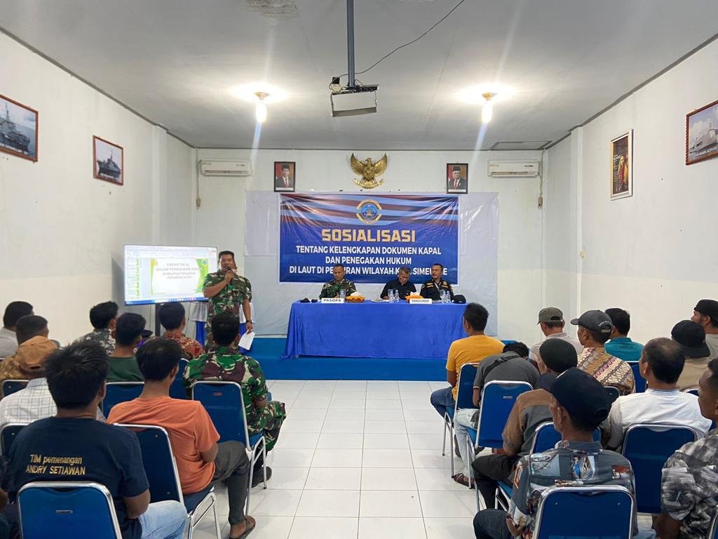 BuseronlineNews.com // TNI AL, Simeulue,- Lanal Simeulue berikan Sosialisasi tentang Kelengkapan Dokumen Kapal dan Penegakan Hukum di Laut, diikuti oleh 40 orang Tokoh Masyarakat yang terdiri dari pemilik kapal dan nelayan Kabupaten Simeulue, bertempat di Mako Lanal Simeulue, Jum’at (12/01/2024).
