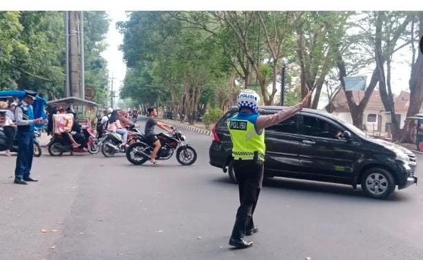 “Personil yang bertugas dari Sat Lantas, Binmas, Reskrim, Intel dan Staf Polres langkat, melakukan Pengaturan Arus Lalu Lintas di Persimpangan jalan Prioritas, agar arus lalulintas tetap aman lancar Kondusif.