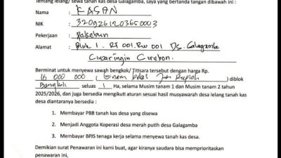 Cirebon – Polemik sewa tanah aset Desa Galagamba, Kecamatan Ciwaringin, Kabupaten Cirebon, kembali memanas. Di tengah sorotan publik terkait ketidaktransparanan mekanisme lelang tanah aset desa, baik tanah bengkok maupun tanah titisara, kini mencuat dugaan keterlibatan mantan Kuwu Desa Galagamba dalam pengelolaan sewa aset tersebut.