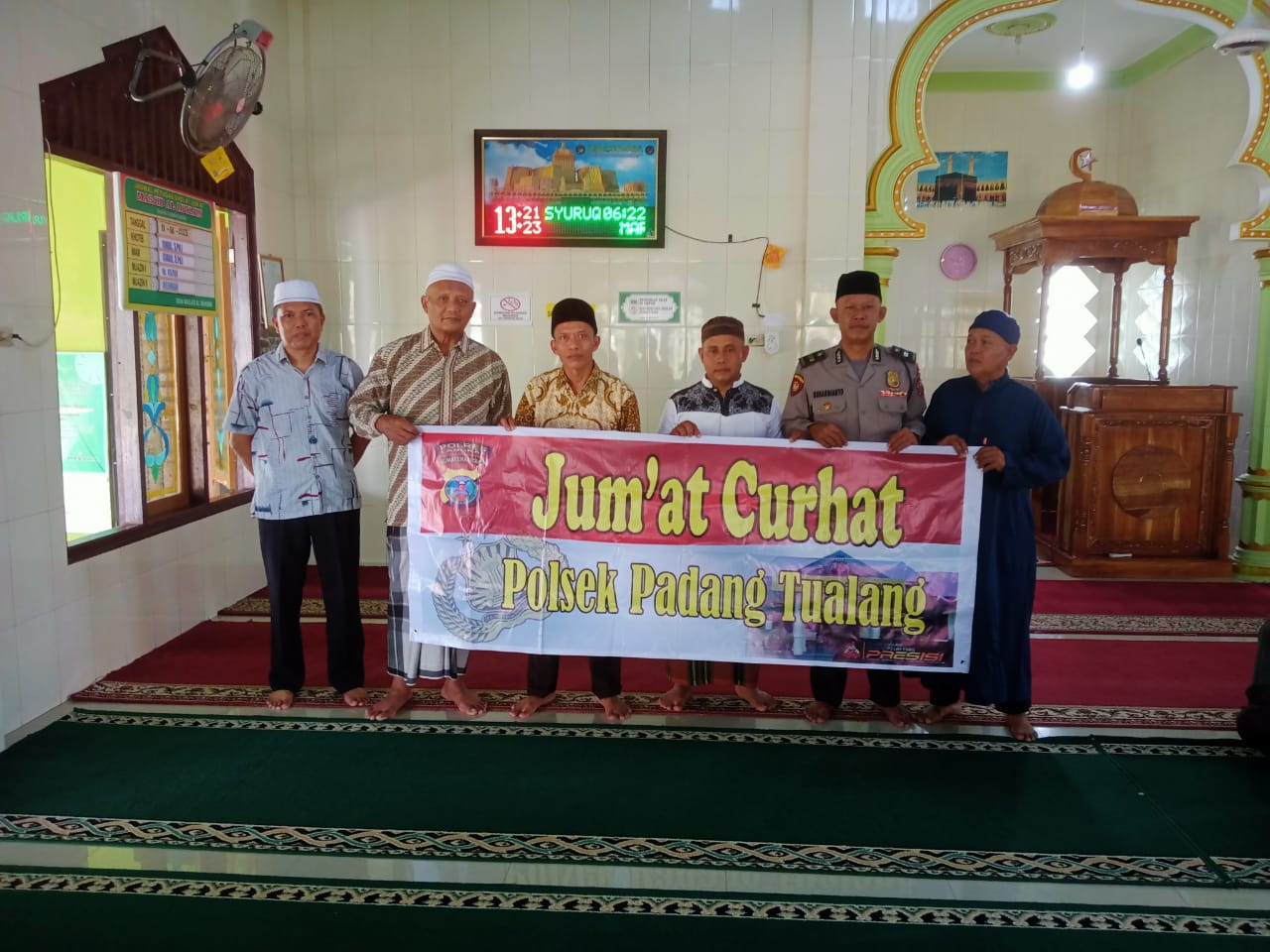 Kegiatan Jumat Curhat dilaksanakan di Mesjid Al- Mukmin Desa Tebing Tanjung Selamat Kecamatan Padang Tualang Kabupaten Langkat.