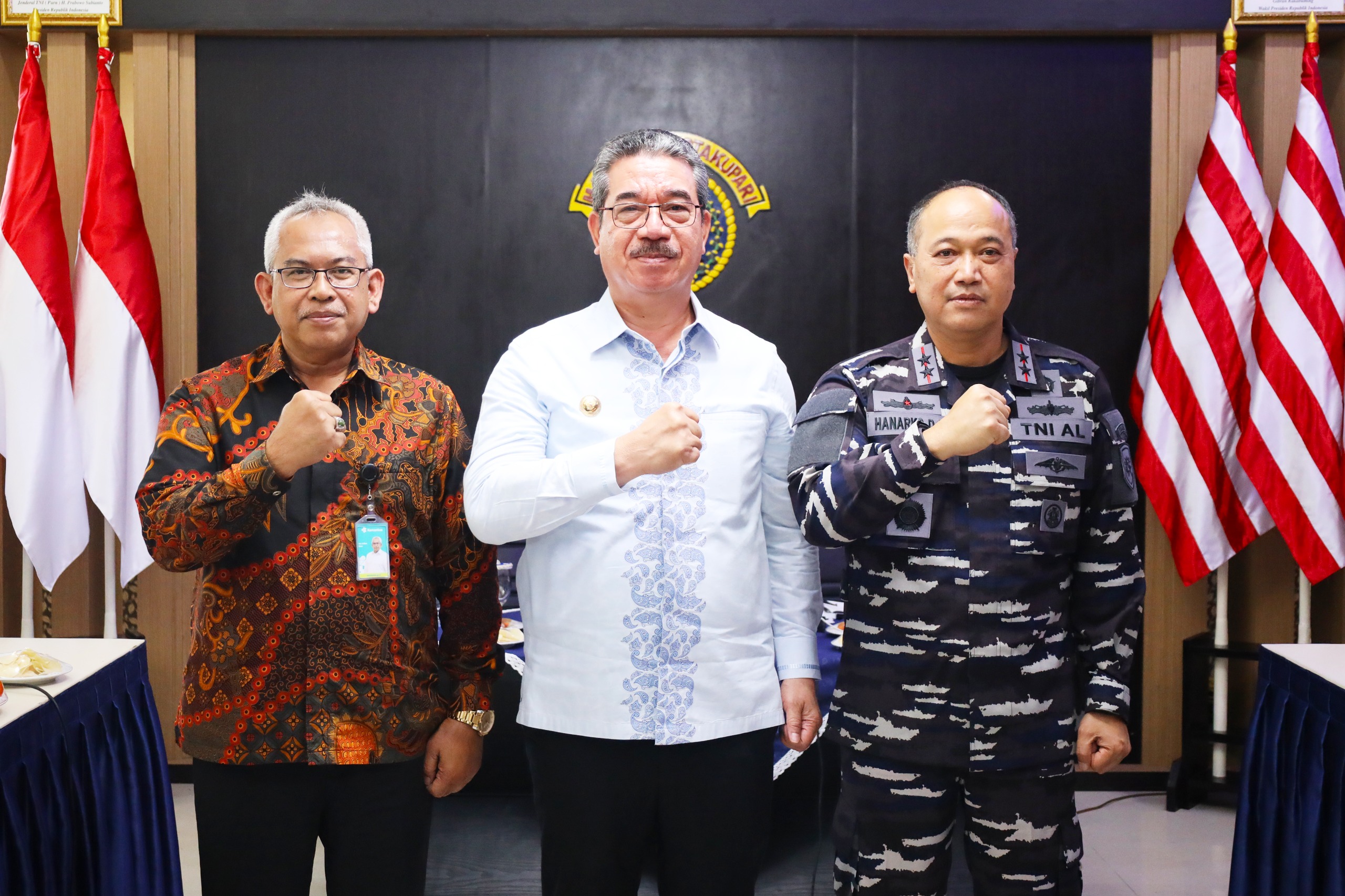 BuseronlineNews.com // TNI AL Ambon,- Komandan Komando Daerah Angkatan Laut (Dankodaeral) IX Ambon Laksamana Muda TNI Hanarko Djodi Pamungkas, S.H., bersama Gubernur Maluku Hendrik Lewerissa menerima paparan dari Kepala Dinas Kesehatan Provinsi Maluku dr. Yan Aslian Noor, MPH., bertempat di Lobby Mako Kodaeral IX, Desa Halong, Kecamatan Baguala, Kota Ambon, Provinsi Maluku, Kamis (04/09/2025).