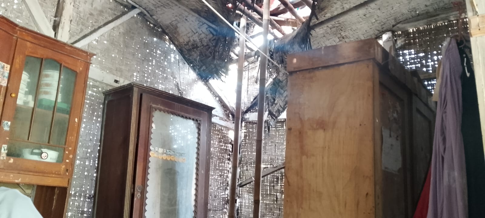 “Kalau sedang tidur dan turun hujan, kami terpaksa mencari tempat yang tidak bocor. Bukan kami tidak berusaha memperbaiki, tapi kondisi keuangan kami tidak menentu,” tuturnya.