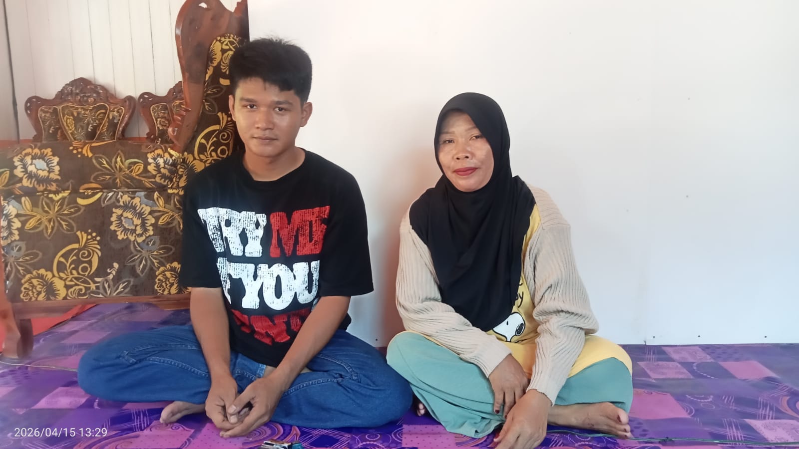 Ibu korban, Salbiah, yang didampingi MM menyampaikan kepada awak media pada Rabu (15/4/2026) bahwa pria tersebut berada di rumah mereka selama kurang lebih satu jam.