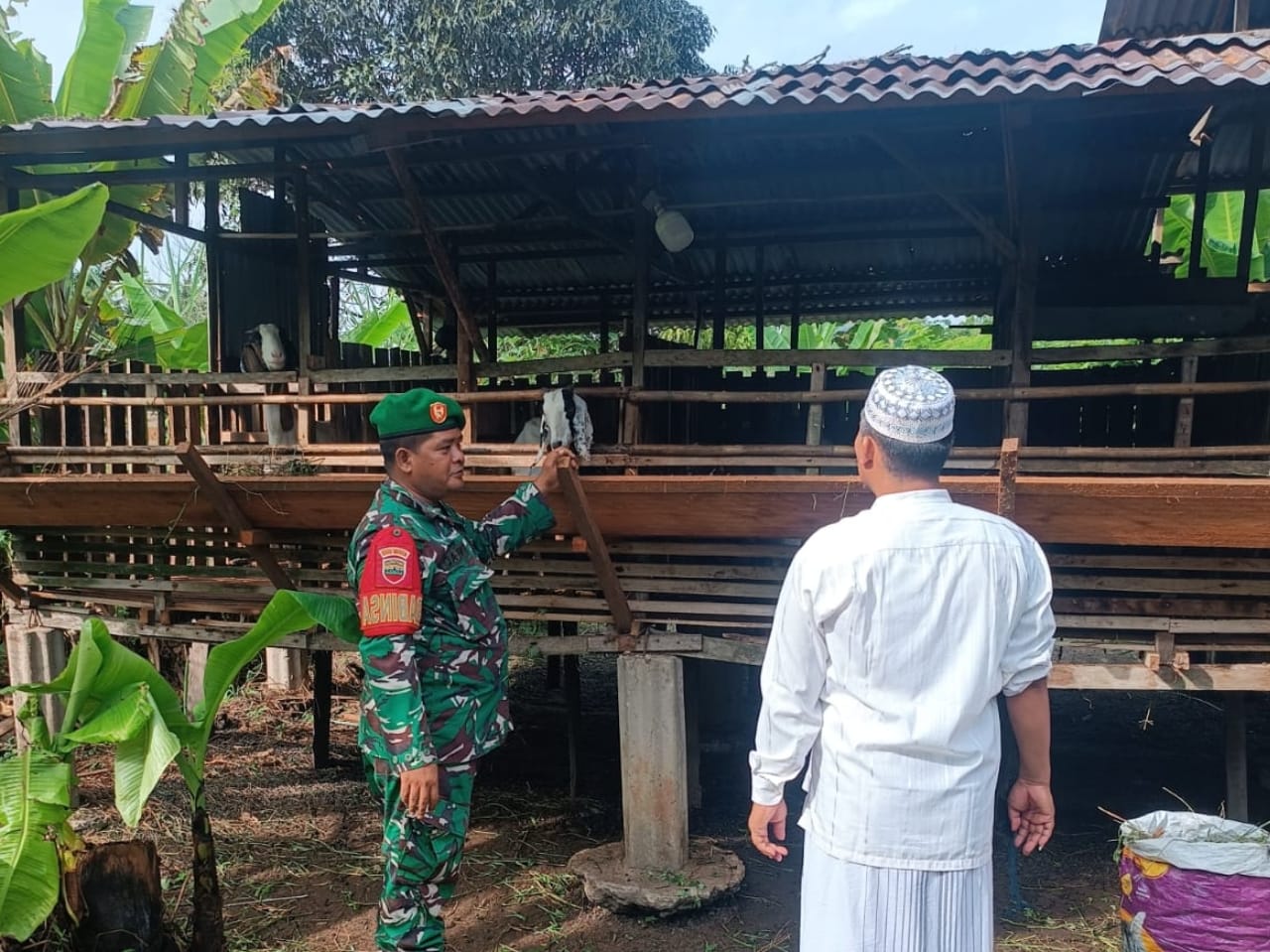 Rupat – Dalam rangka mencegah penyebaran penyakit mulut dan kuku (PMK) pada hewan ternak, Babinsa Koramil 04/Rupat, Sertu Wahirman, bersama Bapak Budi selaku pemilik ternak, melaksanakan kegiatan pemantauan kesehatan hewan pada hari Jum’at, 4 Juli 2025 pukul 09.00 WIB hingga selesai di Desa Sukoharjo Mesim, Kecamatan Rupat, Kabupaten Bengkalis.