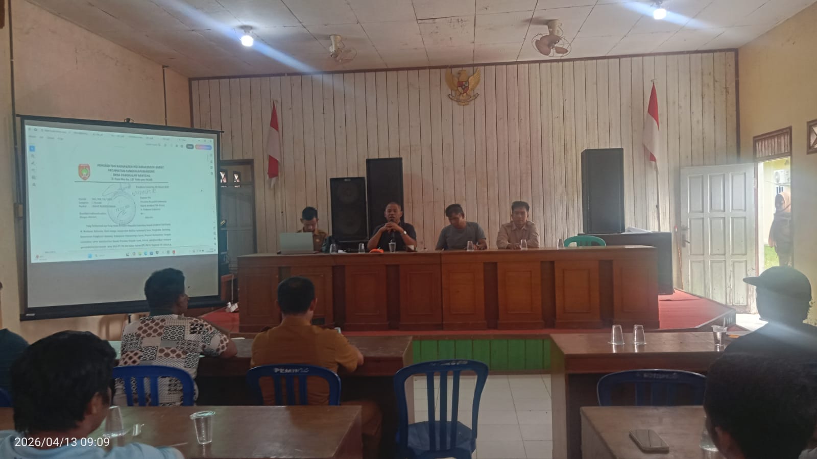 Buseronlinenews – Senin (13/4), di aula kantor Pemdes Pangkalan Banteng, Kecamatan Pangkalan Banteng, Kabupaten Kotawaringin Barat, Provinsi Kalimantan Tengah.