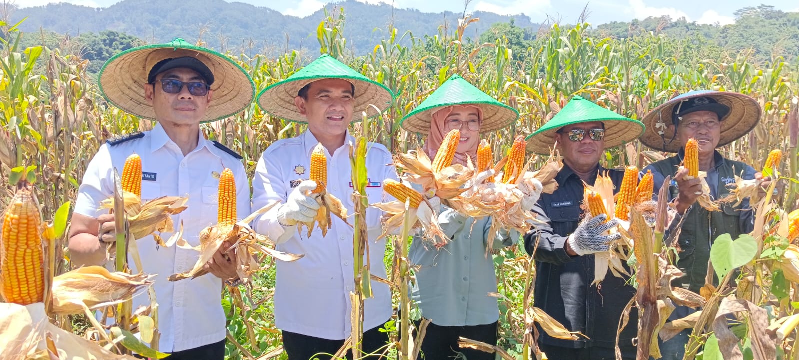 Ikut dalam panen jagung tersebut, Sekda H. Eman Suherman, Ketua TP PKK Kabupaten Majalengka Hj. Erlita Widiasih, Camat Bantarujeg H. Agus Heriyanto , Kepala BPP Bantarujeg dan petani.