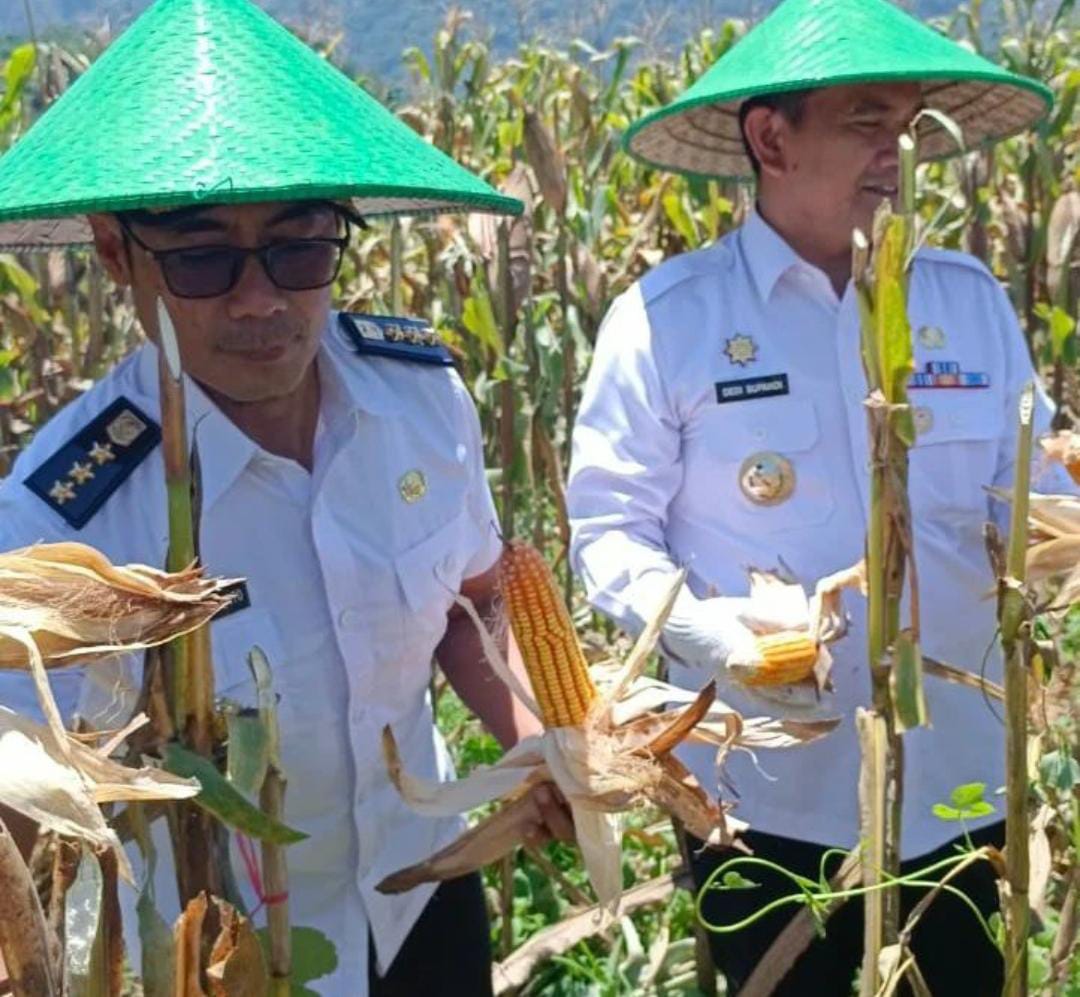 MAJALENGKA- Penjabat Bupati Majalengka Dedi Supandi melakukan panen jagung di Dusun Cipondoh Desa Babakansari Kecamatan Bantarujeg Kabupaten Majalengka, Rabu ( 20/03/2024 ).