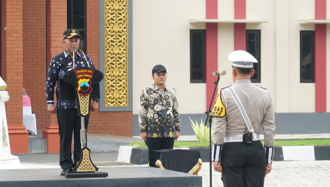 PATI – Pj Bupati Pati Henggar Budi Anggoro, Sabtu (2/3/2024) memimpin Apel Gelar Pasukan Ops Keselamatan Lalu Lintas Candi 2024 dan Aksi Keselamatan Jalan di Mapolresta Pati.