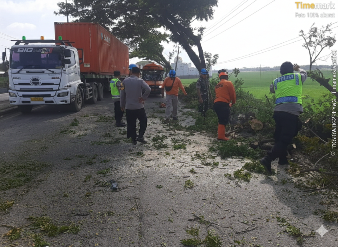 Di lokasi kejadian, petugas Unit Lalu Lintas Polsek Margorejo melakukan rekayasa arus dengan sistem contra flow dari arah Pati Kota dan pengalihan sementara kendaraan untuk mencegah penumpukan panjang. Sementara itu, tim BPBD dengan dukungan pengamanan dari personel Polsek melakukan pemotongan dan pembersihan batang pohon menggunakan gergaji mesin.