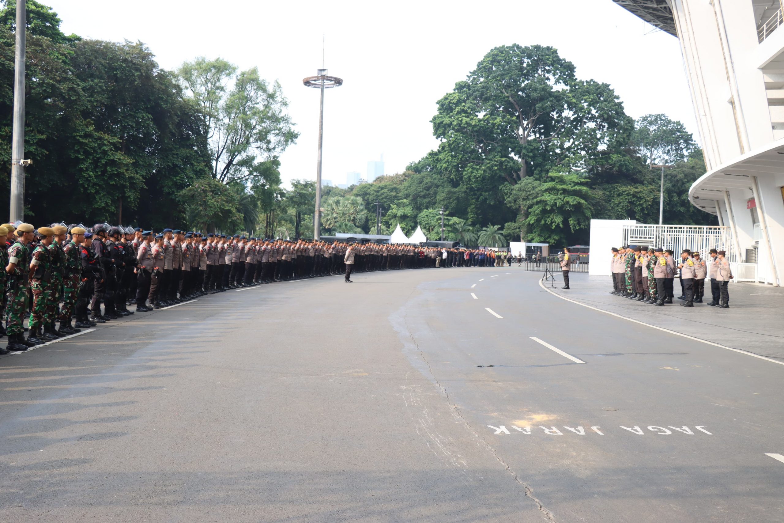Pengamanan pun akan diberlakukan di area Stadion Utama Gelora Bung Karno, menyambut dihelatnya laga antara Persija Jakarta vs Persis Solo, total ada 2.404 personel diterjunkan, yang terdiri atas unsur TNI, Polri, Satpol PP, Dishub, hingga Pemadam Kebakaran.