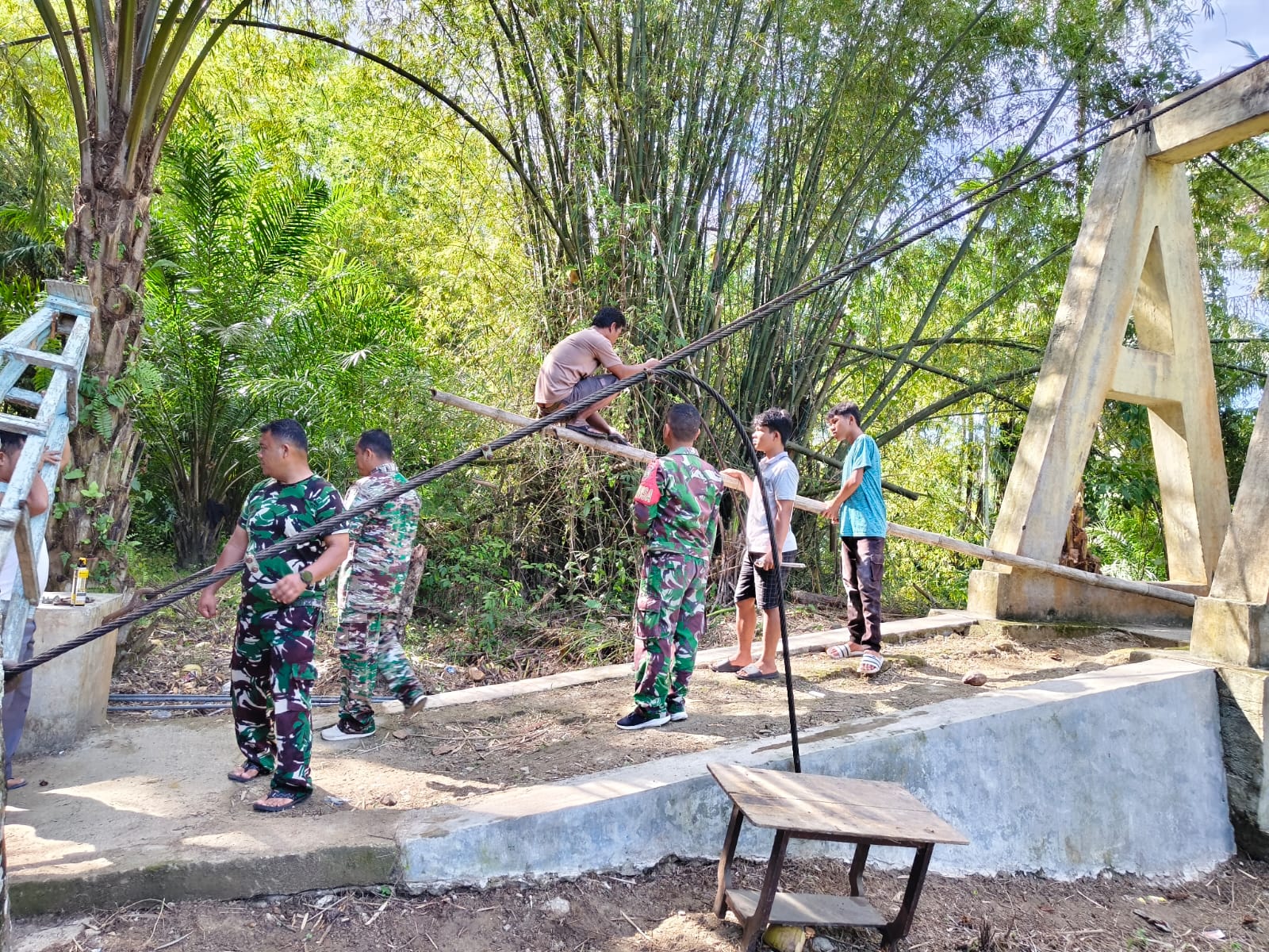 BuseronlineNews.com // Padang Lawas Utara, tniad.mil.id – Kodim 0212/Tapanuli Selatan (TS) bersama masyarakat mulai membangun jembatan gantung di Desa Parupuk Julu, Kecamatan Padang Bolak Julu, Kabupaten Padang Lawas Utara, Senin (13/4/2026), sebagai upaya memulihkan akses warga yang terputus akibat banjir.