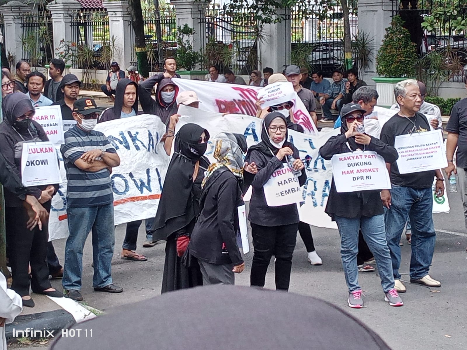 PATI – Puluhan massa yang tergabung dalam Aliansi Rakyat Menggugat hari ini mendatangi kantor DPRD Kabupaten Pati untuk menyampaikan tiga tuntutan, Jumat (01/03/2024).