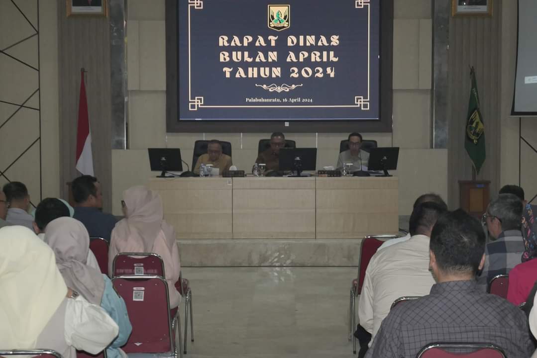 Sukabumi- Bupati Sukabumi H Marwan Hamami memimpin Rapat Dinas Bulan April Tahun 2024, di Aula Sekretariat Daerah Kab. Sukabumi, Selasa, 16 April 2024. Rapat dipandu oleh Sekretaris Daerah Ade Suryaman.