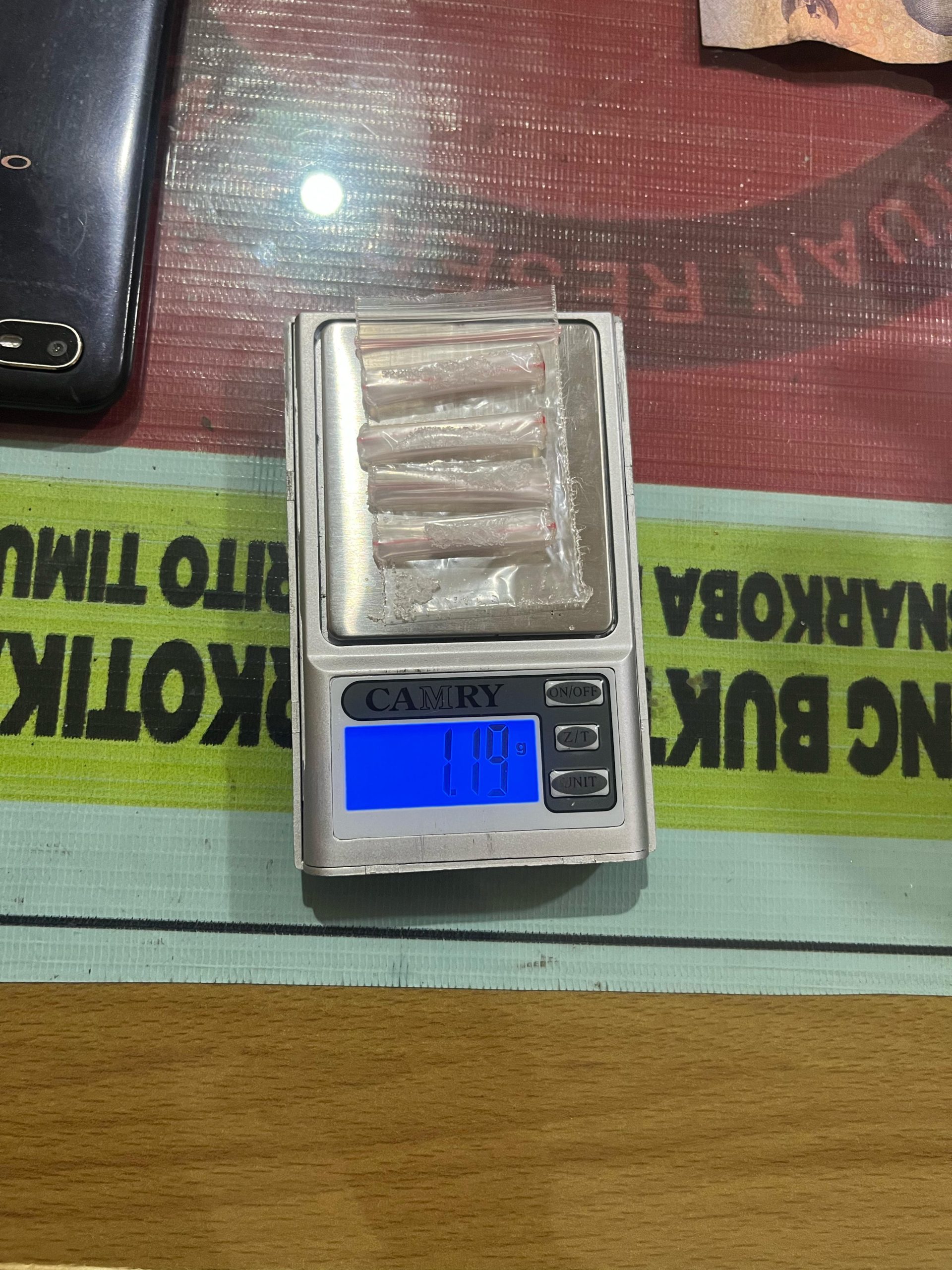 Barang bukti yang berhasil diamankan seluruhnya antara lain 5 (lima) paket diduga narkotika jenis sabu , 1 (satu) pack plastik klip bening merk “LIPS”, Uang tunai sebesar Rp1.010.000,-, 1 (satu) buah dompet kulit berwarna coklat dan 1 (satu) unit handphone OPPO A1K warna hitam serta 1 (satu) unit simcard Telkomsel nomor 081314419032