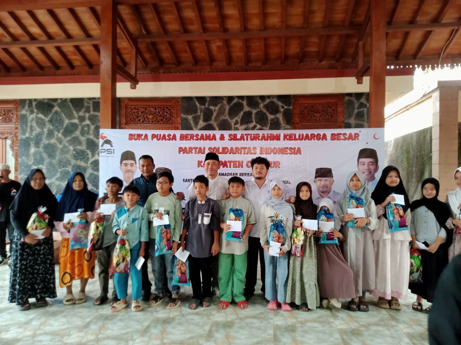 CIANJUR – Memanfaatkan momentum bulan suci Ramadan, Dewan Pimpinan Daerah (DPD) Partai Solidaritas Indonesia (PSI) Kabupaten Cianjur menggelar acara buka puasa bersama yang dirangkaikan dengan pemberian santunan kepada puluhan anak yatim, kaum jompo, serta bantuan sosial bagi warga yang membutuhkan.