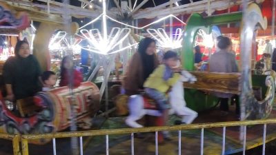 Mulai dari odong-odong, permainan ketangkasan, hingga wahana hiburan lainnya turut memeriahkan suasana.
