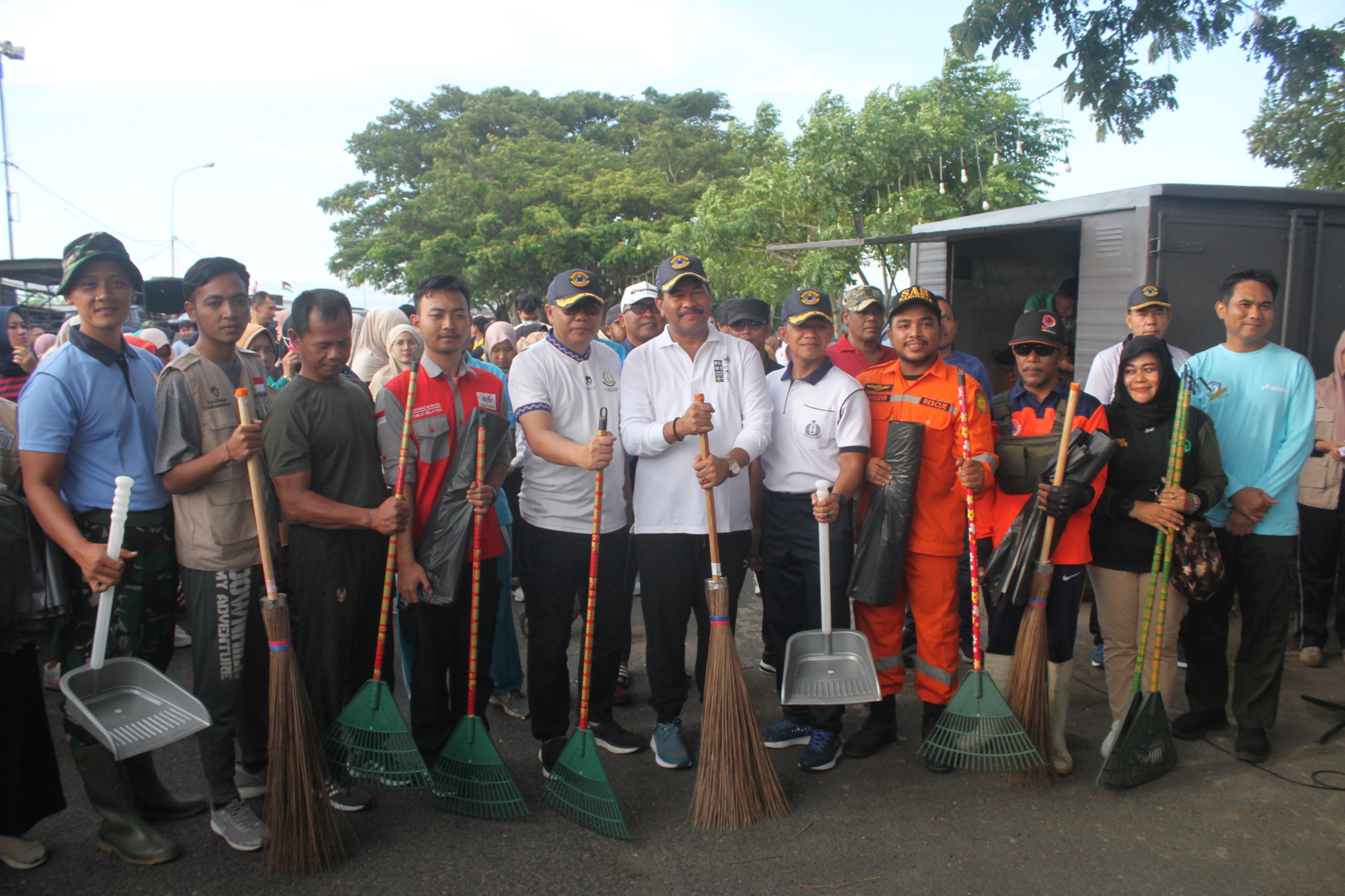 Danlanal Lhokseumawe Kolonel Laut (P) Andi Susanto dan Pj. Walikota Lhokseumawe A. Hanan memimpin aksi gotong royong yang bertemakan “Gerakan Mako Kompleks TNI AL Tertib, Bersih dan Rapi (Gempal Tersebar), Wisata Angkatan Laut (WAL), Gerakan Senang Ke Pantai dan Laut Bersih.” yang berlangsung di Waduk Pusong Kota Lhokseumawe.